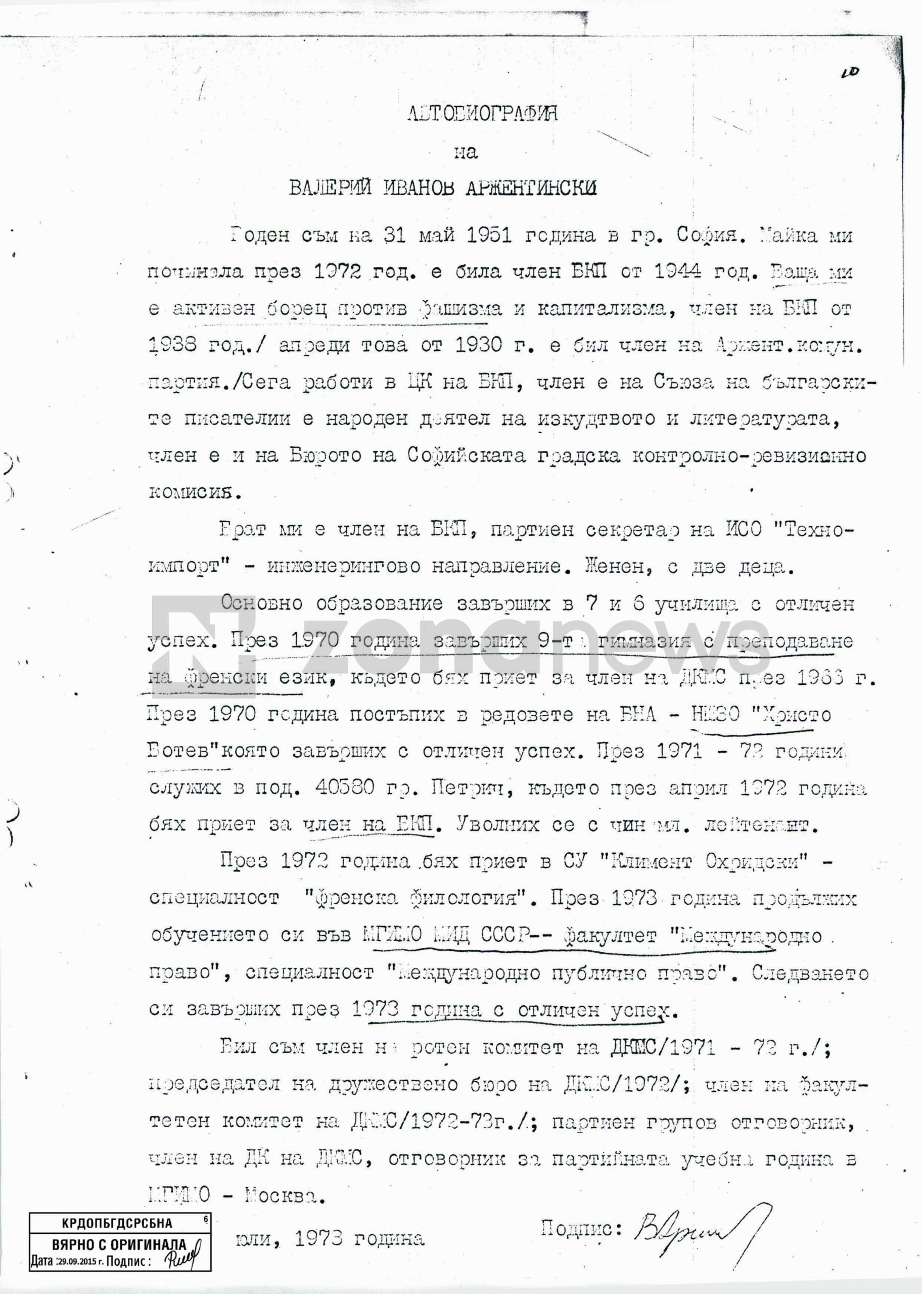 Нека прочетем какво е написал Валентин Добрев собственоръчно в автобиографията си: