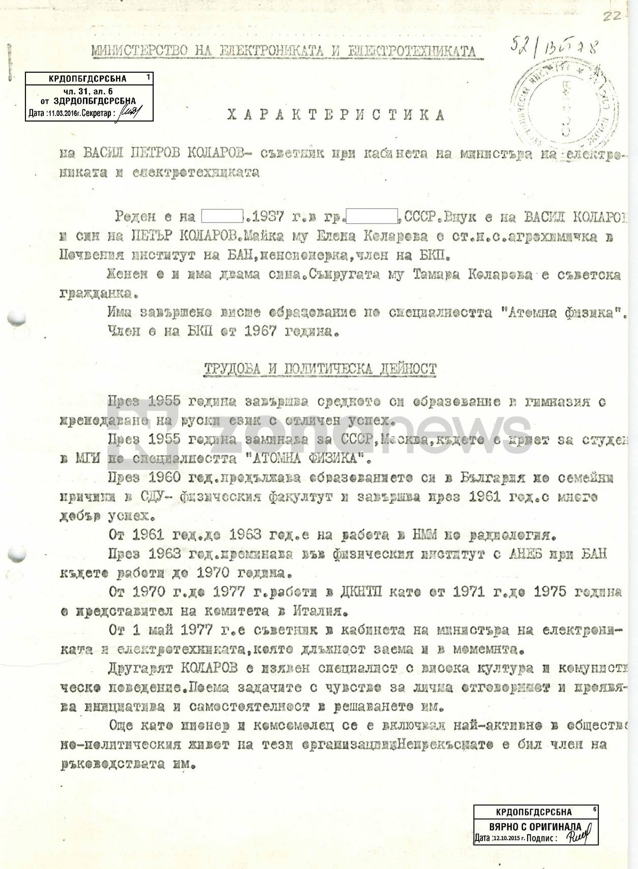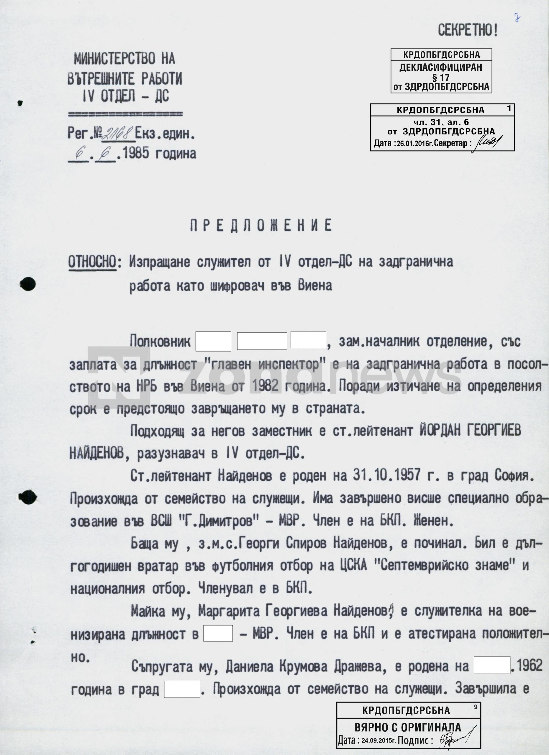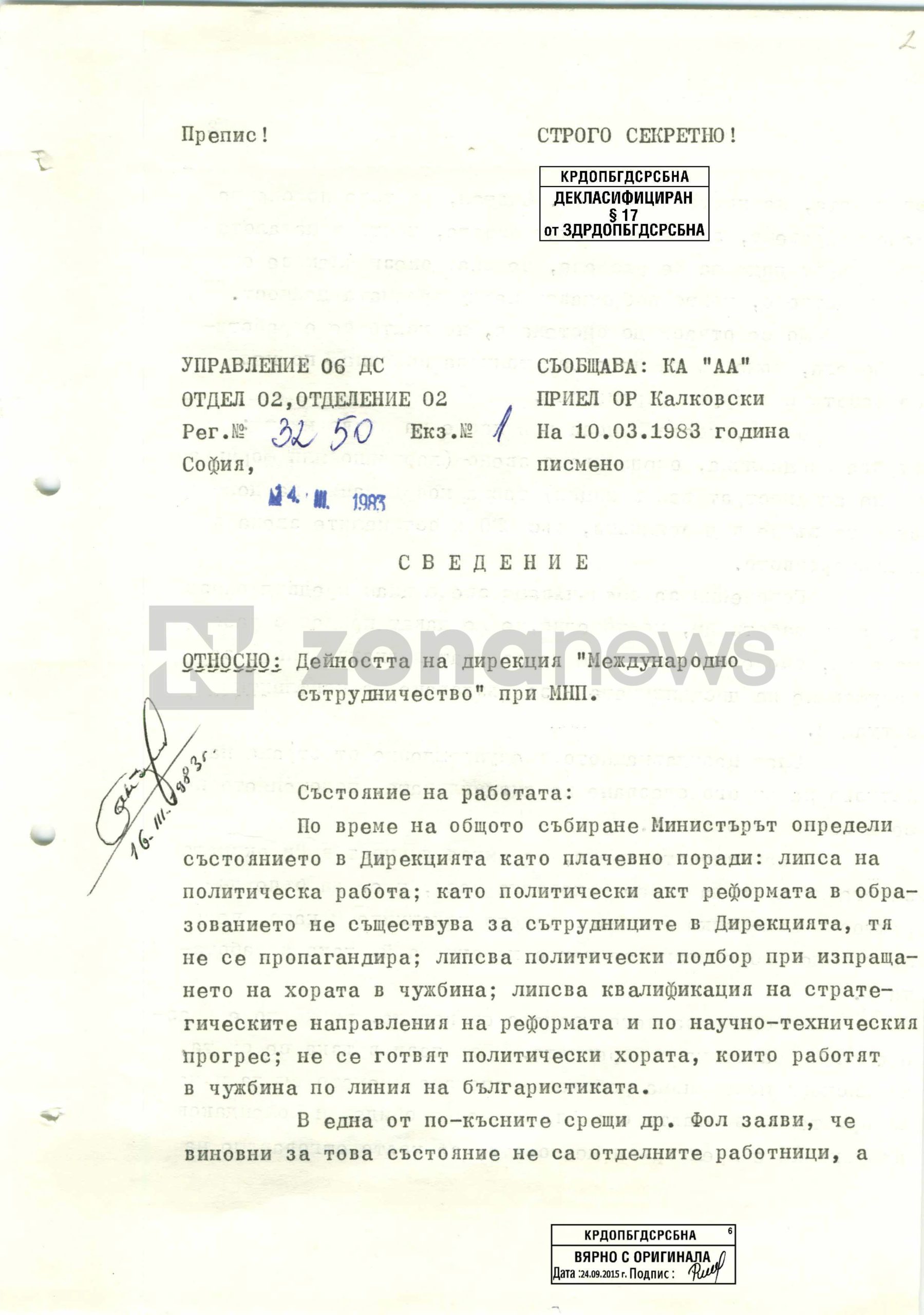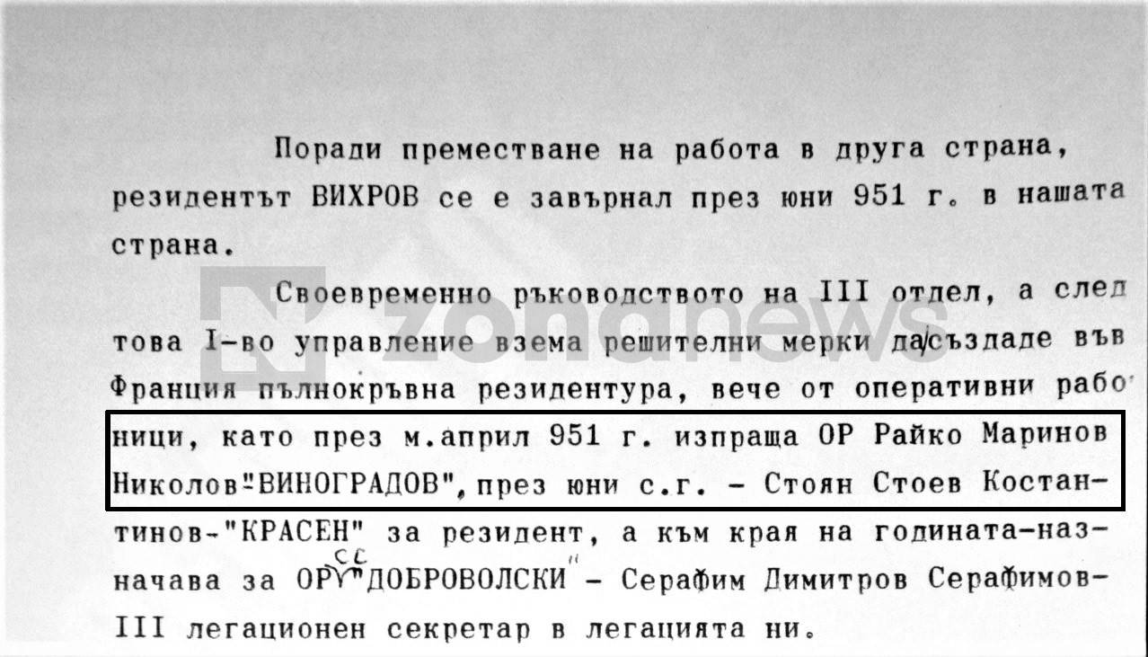 Ето факсимиле на документ от архива на ПГУ-ДС, който за пръв път категорично доказва това, което досега само се предполагаше и подхвърляше в журналистически публикации, вкл. и в чуждестранни медии. Основно покрай т.н. „вербовка“ на бившия френски военен министър Шарл Ерню от Райко Николов (Ерню е вербован от румънци и руснаци, бел.ред.).