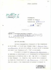 На 26 декември 1989 г. е проведена среща със сътрудника „Алексей“ (Валерий Аржентински), с оперативен № 15701. Срещата е проведена от оперативните работници от РУМНО „Богданов“ и „Голчев“: