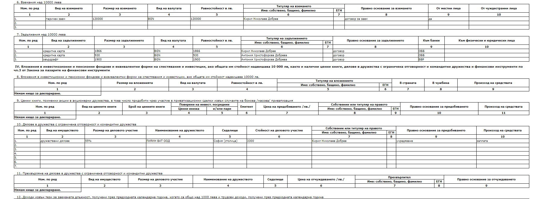 В декларацията си пред КПКОНПИ за 2018 година зам.-шефът на БСП и член на Националния предизборен щаб на партията Кирил Добрев декларира дялово участие от 55% във фирмата „Пирин Ват“ ООД.