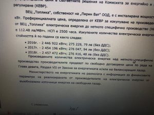 Breaking.bg поиска по Закона за достъп до обществена информация-ЗДОИ данни от Министерство на енергетиката за приходите на фирмата от производство на електроенергия и цената на изкупувания ток от ВЕЦ „Топлика“ за последните три години.