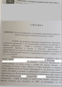 BREAKING.BG разполага с копие от справка на ДАНС, изготвена преди седем години, в която агентите уличават действащ магистрат в осигуряването на чадър срещу абонаментна месечна такса.