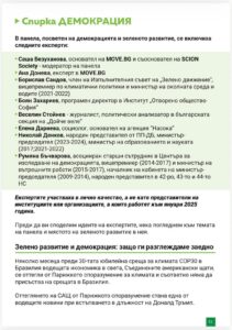 Само преди ден пък депутатът от „Има такъв народ“ Станислав Балабанов обяви в парламента, че в последната седмица на мандата на Николай Денков като министър на образованието на „Продължаваме промяната“ в кабинета „Петков“ е регистрирано скандалното училище „Космос“, в което се е водел на обучение по документи 15-годишният Александър Макулев, убит от ламата Калушев. „Рекламната кампания на това училище всеки ден е седяла сайта на фондацията “Майко мила“, която е на депутата от ППДБ Елисавета Белобрадова“, допълни Балабанов. Миналата година, през април 2025 г., фондация MOVE.BG публикува доклада „Мисия Зелени Иновации: Компас към просперитет – 200 идеи в подкрепа на развитието на зелените иновации в България“. Документът претендира да предлага визия за устойчиво развитие чрез зелени технологии, но на фона на скандалите около връзките на ППДБ с Петроханската секта през последния месец, той изглежда повече като инструмент за влияние, отколкото неутрален експертен анализ. Докладът е разделен на пет сфери или „спирки“: демокрация (т.е. политика), образование, икономика, общини и финанси.