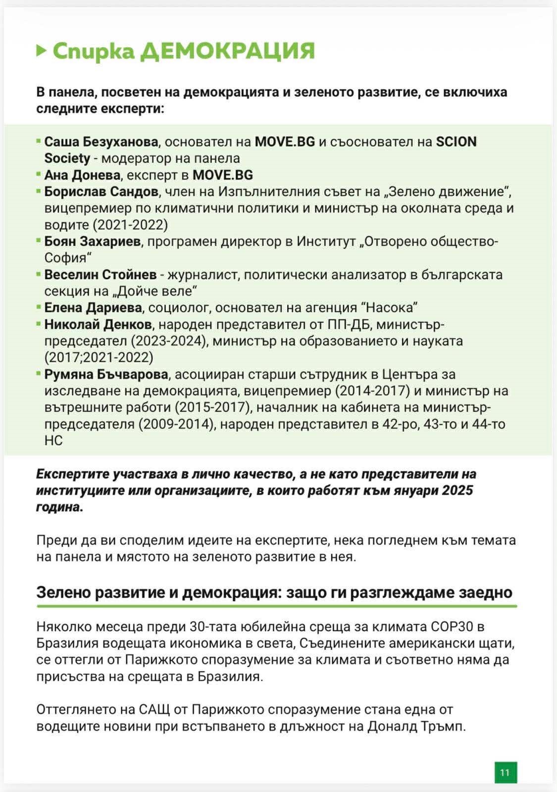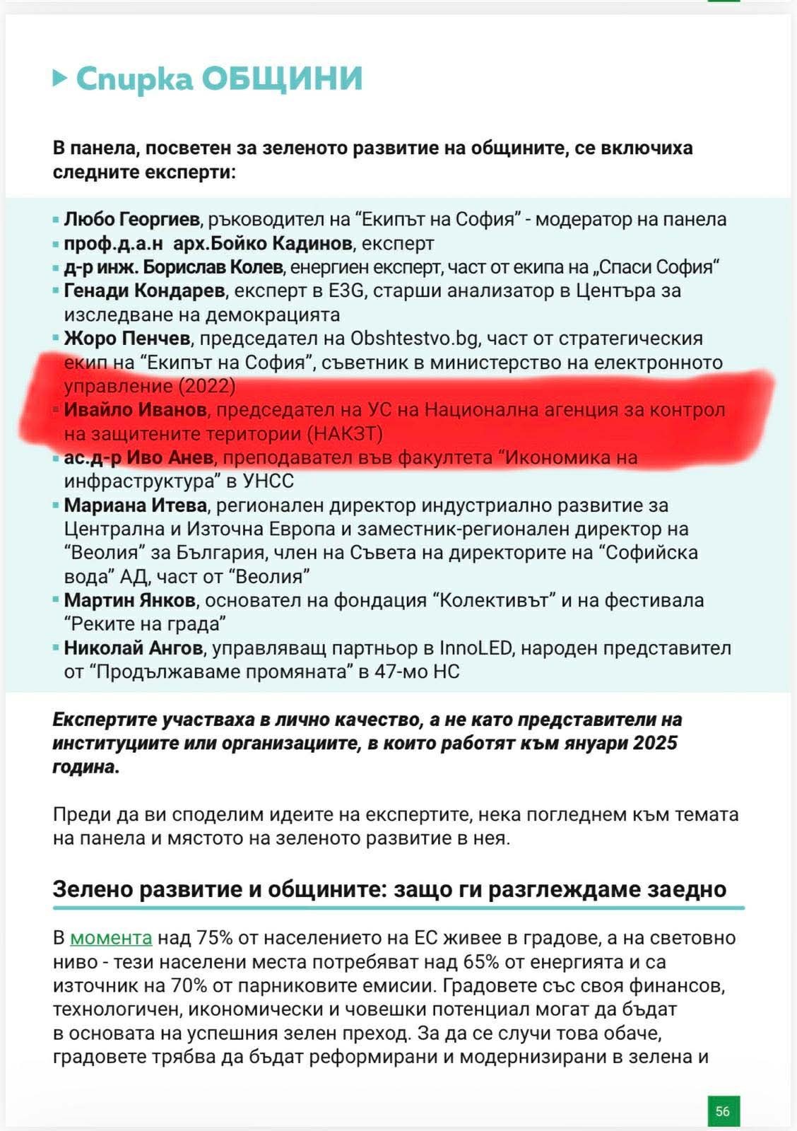 „Шефката на премиерския кабинет на Андрей Гюров Румяна Бъчварова и експремиерът Николай Денков са участвали заедно с финансиста на Петроханската секта Ивайло Иванов (Ивей) в разработването на стратегически документ за бъдещите зелени политики на България в различни сфери.