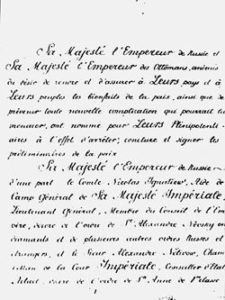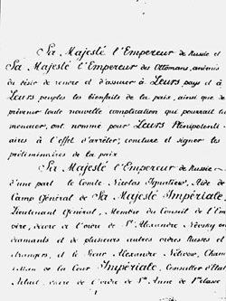 В шифрованото нареждане от Петербург до ръководителя на руската делегация граф Н. Игнатиев мирният договор е наречен „обикновен прелиминарен протокол“. Това произтича от тайните споразумения на Русия с Австро-Унгария, уговорени преди войната.
