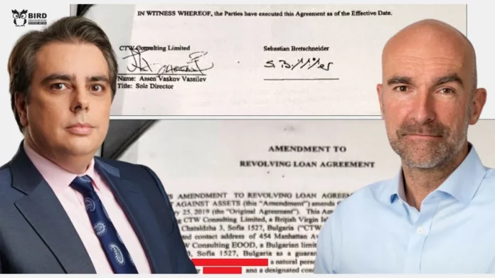 Фирмата от Британските вирджински острови CTW Consulting Ltd. е взела 1,5 млн. долара заем от американския гражданин Себастиан Бретшнайдер (Sebastian Bretschneider). Договорът е подписан от Асен Василев. Исканията за плащане до Бретшнайдер са подписани от Асен Василев. Парите са получени по сметка на фирмата в българска банка.