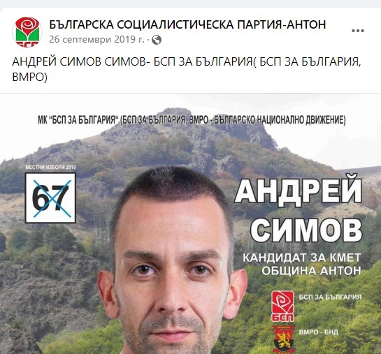 Към настоящият момент не се знае каква е политическата принадлежност на Андрей Симов, но напоследък по изборите ПП бие БСП в село Антон, а малката средногорска община се радва на много одобрени проекти откакто до властта се докопаха шарлатаните на Румен Радев – ПП.