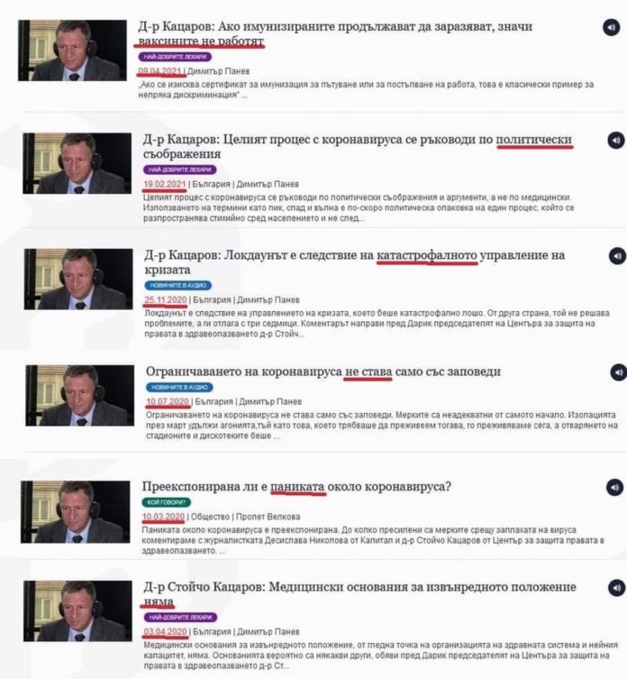 Цялата пропагандна машина на Чалгарите бе пусната на пълни обороти, за да обяснява, че Ковид-19 няма, а това е само „грипче“ и доразвиваше опорката “всичко е да откраднат едни пари“. Приближената на Слави Антония Първанова, без никакъв лекарски стаж, бе гост денонощно във всякакви студия, където безалтернативно ни разказваше същите опорки. Приближеният на Румен Петков Мангъров също. По медиите, абсолютно безалтернативно, се вихреше и Стойчо Кацаров, бивш зам.-министър на здравеопазването във втория кабинет на Иван Костов. И „архитект“ на сегашната здравна система. Като председател на здравно НПО.