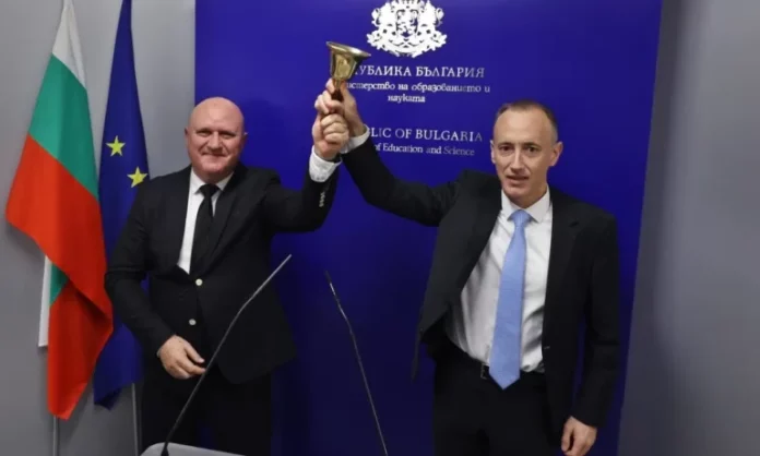 В края на церемонията двамата символично удариха училищен звънец, с което по традиция се предава поста в МОН през годините.