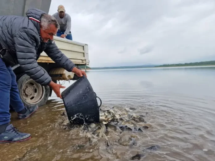 Служители на Изпълнителна агенция по рибарство и аквакултури в Монтана пуснаха днес в язовир „Огоста“ над един тон малки рибки от видовете шаран и бял амур.