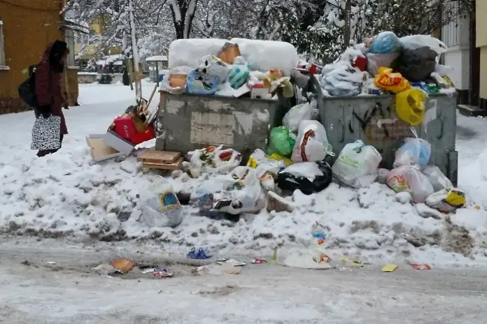 Сняг покри боклука.