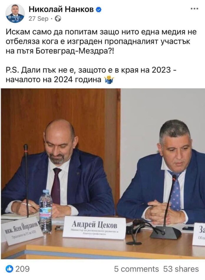 А помните ли как темата заглъхна щом стана ясно, че се е срутило единственото, уж “построено” от Промяната. Разрешителното за строеж на пътен възел “Ребърково” е издадено от бившия регионален министър Андрей Цеков на два етапа – през есента на 2023 година и на 14 февруари тази година. Изграждането му не беше в проекта за модернизация на трасето от наше време – именно защото геологията показваше опасност от свлачища. Как и защо се е наложило да се строи “Ребърково” – да кажат тези, които са го измислили. Но милионите за укрепване няма да дойдат от партийната субсидия на Продължаваме промяната, нали?! А ще бъдат платени от всички данъкоплатци.