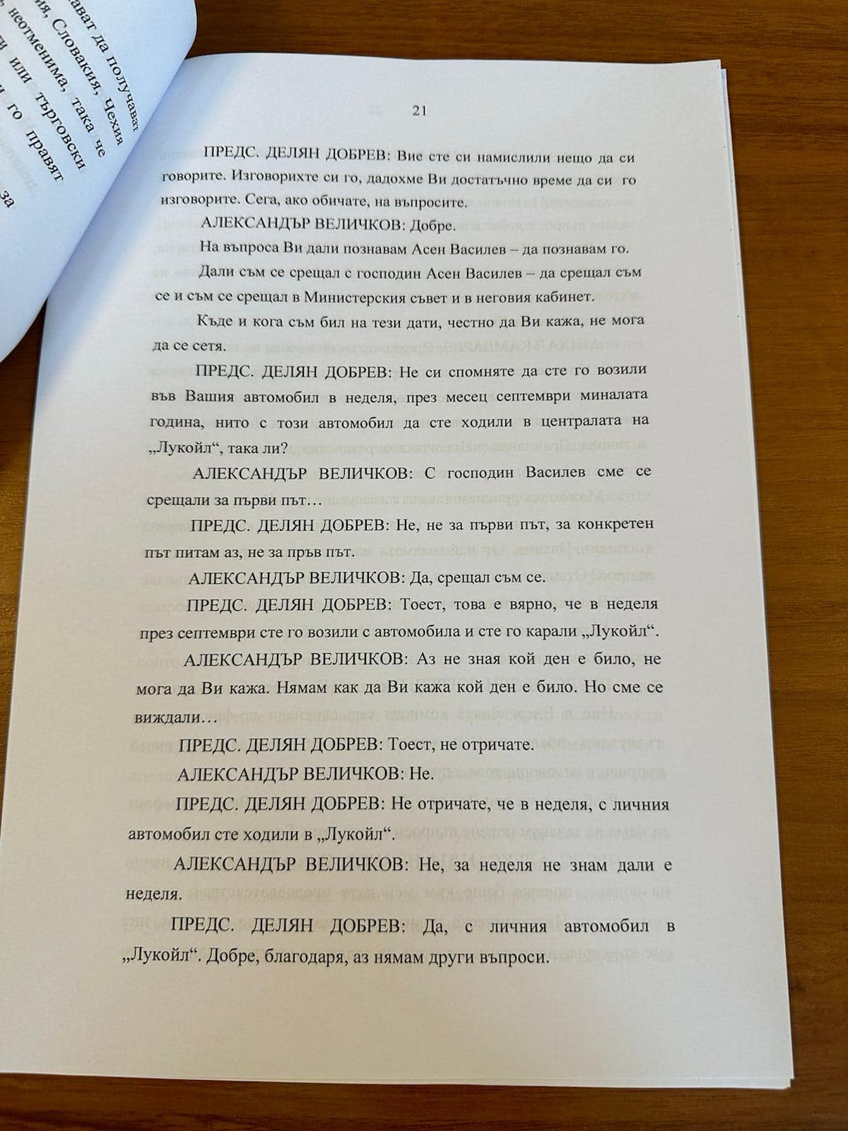 - Асен Василев се вози в колата на шефа на Лукойл в почивен ден. Заедно отиват в централата на Лукойл (прилагам стенограма от изслушване на Александър Величков в парламента).