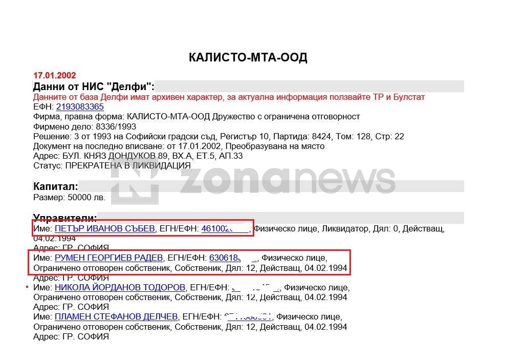 От опит знам, че само истината може да разруши „кралството на кривите огледала“ на Рашков и рашковци. За разлика от него Zonanews изнася само проверена и документално обоснована информация. Поредната подобна много скандална информация е за фирмено участие на днешния президент Румен Радев през 90-те години заедно с един от най-близките съветници на Андрей Луканов. Фирмата е „Калисто-МТА“ ООД, а съветникът на Луканов и бивш шеф на „Булгаргаз“ през 90-те се казва Петър Събев.