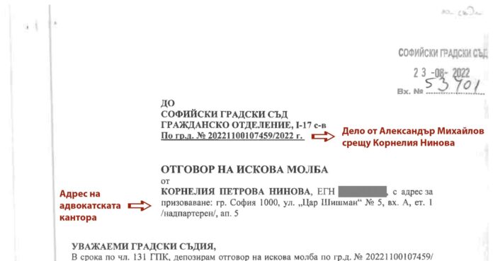 Затова е важно всеки, който е в съдебни битки с Нинова (в момента или в минал период) да провери адреса, посочен от нея за кореспонденция и призоваване: ако е ул. „Шишман“ – пишете ми, това е пак същата тази кантора.
