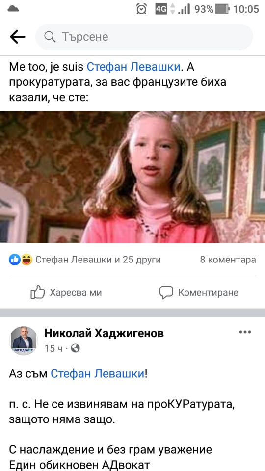 Оказва се, че българските адвокати одобряват поведението на своя колега Стефан Левашки. Нищо чудно сред адвокатите да тръгне и слоган Je suis Levashki