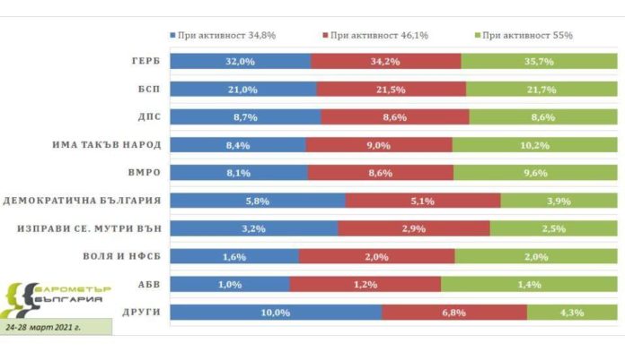 Непосредствено преди парламентарните избори на 4 април „Барометър България“ проведе телефонно проучване сред 888 пълнолетни български граждани. В динамичната обстановка на нарастващи случаи на COVID-19, увеличаваща се смъртност и двуседмичен локдаун към периода на проучването 35% от анкетираните заявяват категоричното си желание да отидат до урните в изборния ден – малко повече от активността на последните избори за евродепутати, формирана единствено от твърдите ядра на политическите сили.