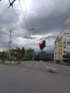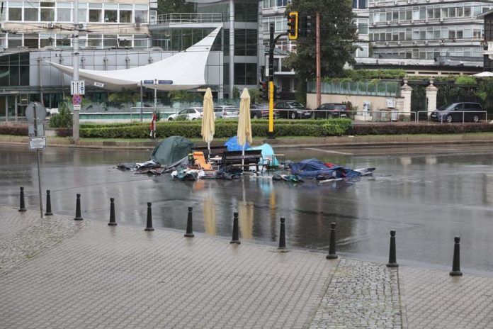Бурята прогони протестиращите от центъра на София, а вятърът събори палатки в късния следобед, когато над София притъмня и се изсипа пороен дъжд.