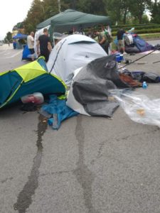Малцина от протестиращите на „Орлов мост“ останаха под дъжда и се скриха под по-големите шатри.