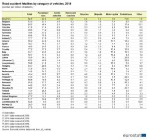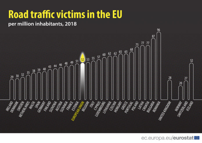 През 2018 г. 23 339 души са загинали в пътно-транспортни произшествия в ЕС. От жертвите на пътя 45% са пътували с леки коли, 21 на сто са пешеходци, 15% – мотоциклетисти, 8 на сто колоездачи и 12% са включени в други категории (камиони, микробуси, автобуси и др.)