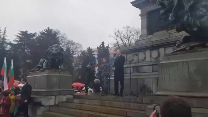 Това стана, докато президентът се качваше по стълбите на Паметника на свободата, за да произнесе слово по случай 142-ата годишнина от освобождението на града от турско робство