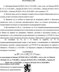Всички хора са длъжни да носят защитна маска, когато се намират в закрити или на открити обществени места. Такава заповед издаде здравният министър днес, съобщиха от здравното министерство.