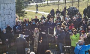 Георгиев говори пред медиите след края на възпоменанието при мемориала на жертвите на комунистическия режим.