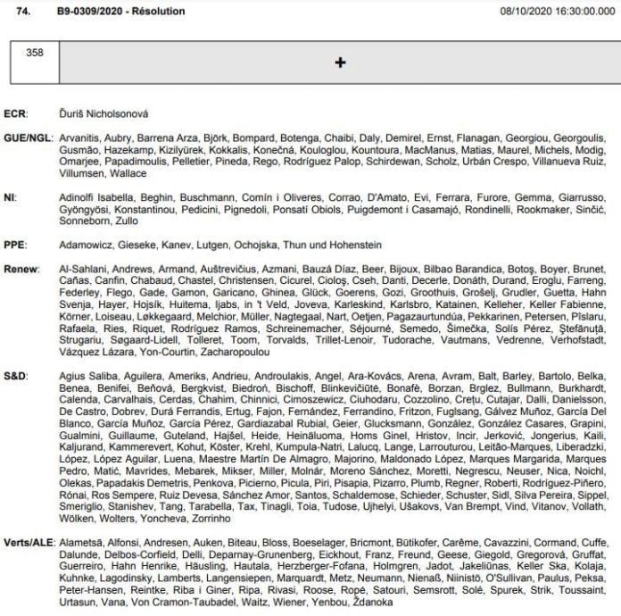 Това са резултатите от гласуването по имена в ЕП за резолюцията. Всички депутати от БСП са гласували „ЗА“ ОМО „Илинден“, косвено ЗА „признаването на македонско малцинство“ у нас, за Истанбулската конвенция, за джендърството и пр. Браво на тях!