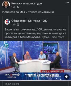 В същото време в публикация в антиправителствената фейсбук страница „Колажи и карикатури“ тримата водачи на протеста бяха наречени „триото измамници“.