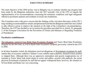 Според доклад на Съвета на Европа психично болни пациенти в болница „Св. Иван Рилски“, чийто директор е Цветеслава Гълъбова, са заключвани с катинари за леглата
