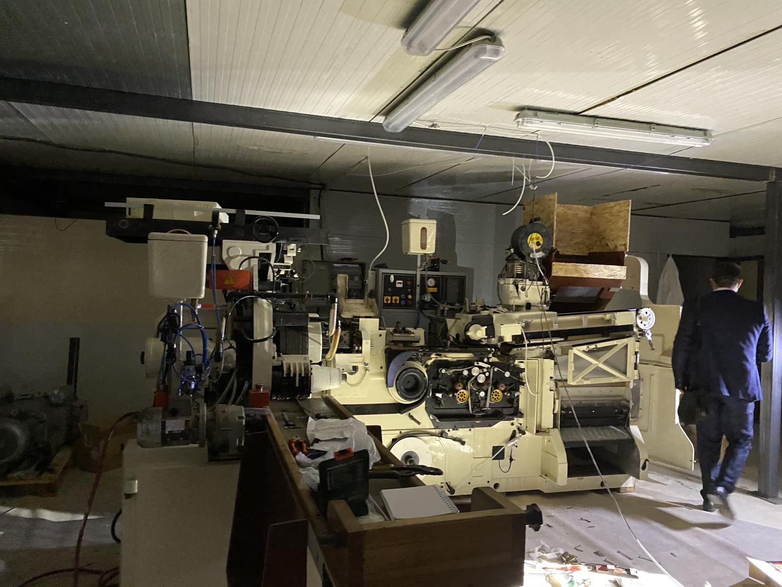 При извършения първоначален оглед е установено, че откритите машини, монтирани в поточна линия, са нови и от най-висок клас. Във фабриката е имало обособено и специално помещение за предварителна обработка и рязане на тютюн. Установени са множество кашони с надпис „Филтър“, картонени изрезки за цигари „Марлборо“, листове за опаковки, коркофан, ципер, тютюн и др.