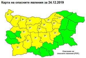 В Северна България предупреждението важи за Видин, Монтана, Враца, Плевен, Велико Търново и Русе. В Централна България вятърът ще бъде по-силен в Пазарджик, Пловдив, Стара Загора, Сливен и Хасково. Очакваните пориви на вятъра са до 24 м/сек, предупреждава Националният институт по метеорология и хидрология, цитиран от БНР.