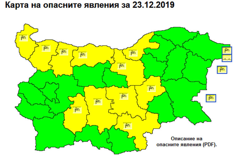 В Северна България предупреждението важи за Видин, Монтана, Враца, Плевен, Велико Търново и Русе. В Централна България вятърът ще бъде по-силен в Пазарджик, Пловдив, Стара Загора, Сливен и Хасково. Очакваните пориви на вятъра са до 24 м/сек, предупреждава Националният институт по метеорология и хидрология, цитиран от БНР.