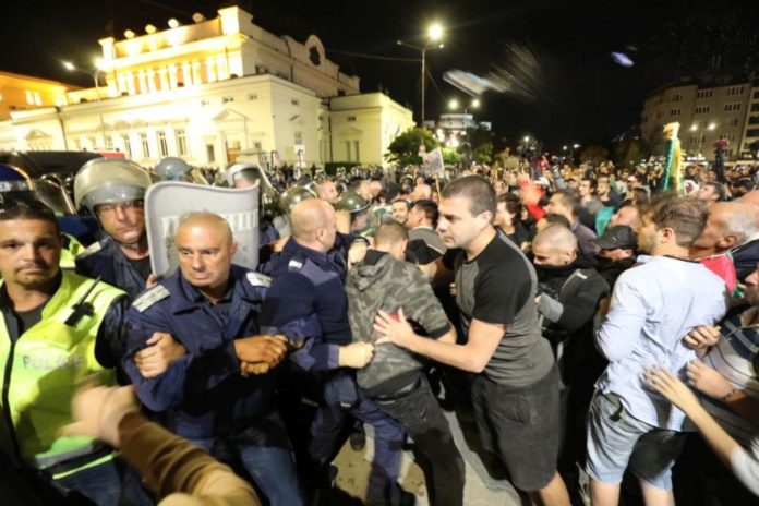 Напрежението до старата сграда на Народно събрание възникна около 22 часа. Някои от организаторите на нерегламентираните протестни действия проявиха вербална агресия спрямо служителите на реда, като през мегафони крещяха от много близко разстояние в техните лица. Неголеми групи провокатори с профил и хулиганско поведение на лица, свързани с ултраси на футболни клубове, замеряха полицаите с камъни, пиротехнически изделия и бутилки, пълни с течност. От втори и трети ред те се опитваха да изтласкат напред други протестиращи граждани и така да предизвикат сблъсъци със служителите на реда. Столичната полиция продължава работа по установяване самоличността на провокаторите, като на следващ етап предстои да бъдат предприети и съответните правоохранителни мерки спрямо агресивните и хулигански прояви на тези лица.