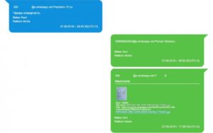 Видно от разменена писмена кореспонденция чрез мобилно приложение на 27 септември 2018 г. „Prezident-Pl. Uzunov” пише до П.Б.: „Чакам номерчето.“ Отговорът на П.Б. до „Prezident-Pl. Uzunov” съдържа снимка, която предоставя информация за образуваното две седмици по-рано (на 13 септември 2018 г.) административно дело по протест срещу предхождащо решение на Административен съд-Бургас. Самото заседание на ВАС по конкретното адм. дело е насрочено за 27 ноември 2018 г.