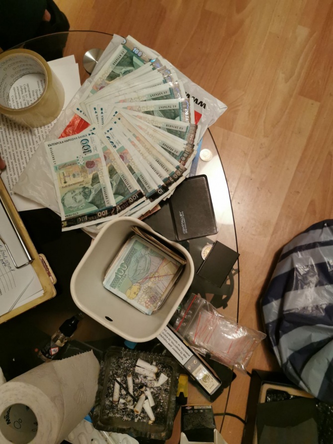 При извършените процесуално-следствени действия в задържаните осмина столичани, ползваните от тях автомобили и обитаваните адреси са намерени и иззети подготвени за разпространение в различни разфасовки 10 грама кокаин и 10 грама канабис, везни, мобилни телефони, тефтери със записки за извършваната престъпна дейност и големи парични суми в левове и евро.