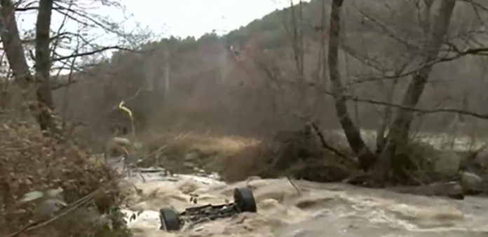 Водите на река Градевска отнесоха джип край Симитли. По чудо шофьорът се е измъкнал невредим.