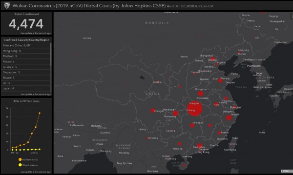 Вече в реално време всеки може да следи как и къде се разпространява коронавирусът, който блокира Китай. Инженери от Whiting School of Engineering на университета „Джонс Хопкинс“ създадоха сайт, който в реално време показва колко са заразените и жертвите по целия свят.