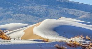 В мароканската част на Сахара сняг падна в близост до популярното туристическо село Мерзуга в югоизточната част на страната, създавайки за известно време зимен пейзаж в районите на пясъчния масив Ерг Чеби.