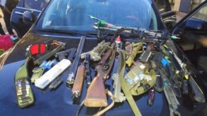 карабини, бойна щурмова пушка, бронежилетка, каска, патрони, брадви,