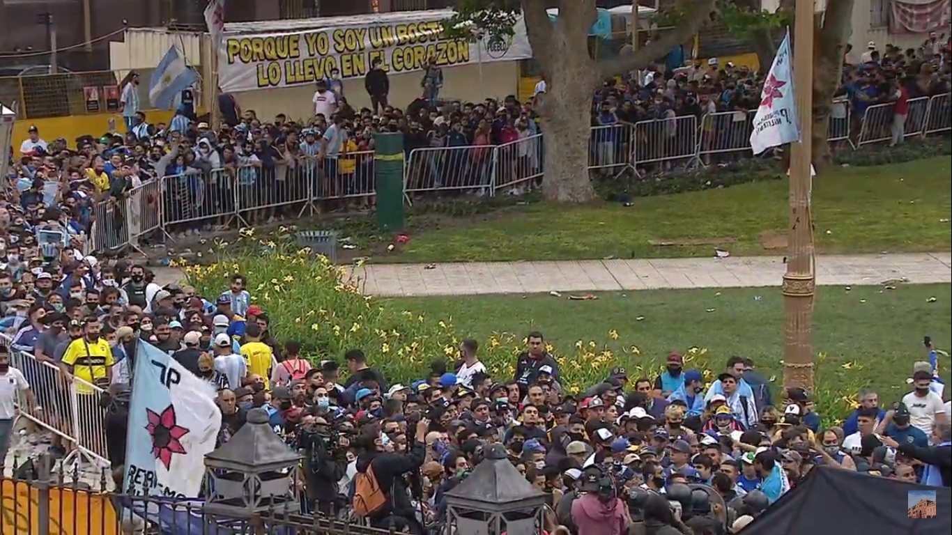 Някои от феновете му казват молитви, крещят, други изпращат въздушни целувки и махат за последно на звездата, чиито ковчег е положен в Каса Росада, обгърнат от флага на Аржентина.