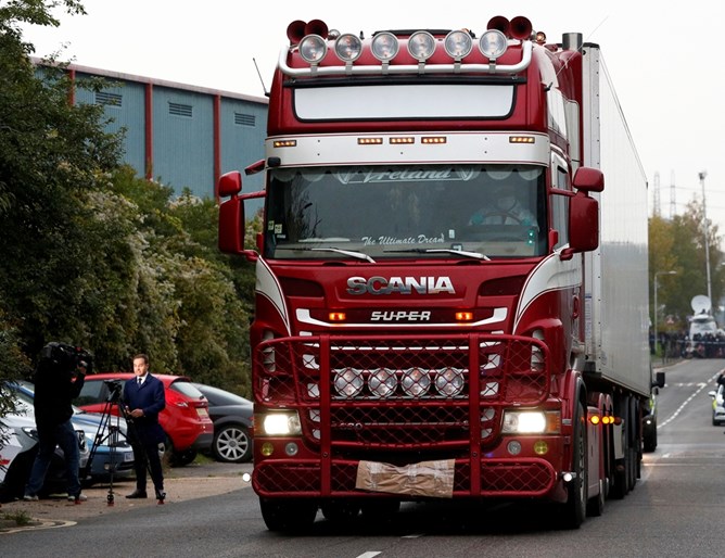 Труповете бяха открити на 23 октомври в камиона в индустриална зона на 40 км източно от Лондон. Влекачът влязъл във Великобритания през пристанището Холихед, където акостират фериботите от Ирландия, а контейнерът прситгнал от белгийско пристанище. Твърди се, че загиналите са китайци – те са 8 жени и 31 мъже. Макар че се проверява дали сред жертвите няма и жители на други страни от Югоизточна Азия.