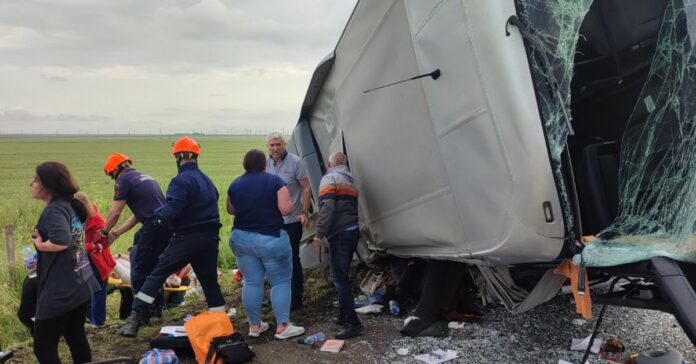 Около 17.17 ч. днес е получено съобщение за самостоятелен пътен инцидент с туристически автобус, осъществен в района на км. 356 от автомагистрала “Тракия” в посока Бургас, при който вероятно поради заспиване на 45-годишния водач, автобусът първоначално се блъска в билборд, а после се обръща в крайпътната канавка. Това съобщиха от МВР.