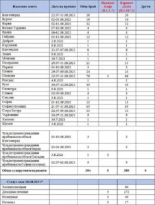 Справката за състоянието на пациентите е към 18.08.2021 г. Провежда се допълнително епидемиологично проучване.