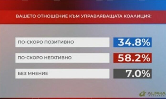 Данните сочат още, че почти 60% от анкетираните определят отношението си към управляващата коалиция като по-скоро негативно. За 67% напрежението между коалиционните партньори е резултат от безпринципни договорки за постовете.