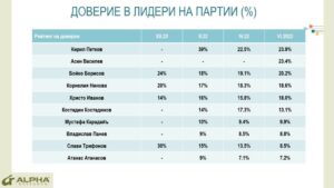 Без съществена динамика в доверието към политическите лидери. Двамата съпредседатели на ПП – Кирил Петков и Асен Василев имат практически едни и същи рейтинги – около 23% доверие и 46% недоверие.