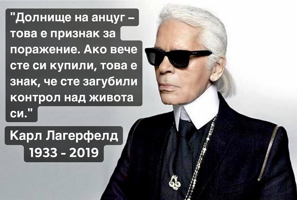 Цитира Лагерфелд, според когото, ако сте си купили анцуг, това е знак, че сте загубили контрол над живота си
