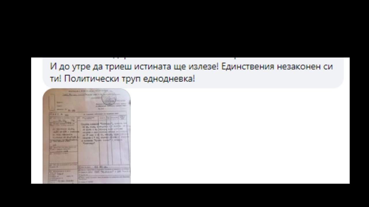 А на Фейсбук-страницата на Радостин Василев, Цветан Фиков поства: “И до утре да триеш истината ще излезе! Единствения незаконен си ти! Политически труп еднодневка!”