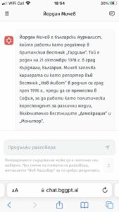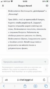 Българският изкуствен интелект е уникална идиотия. Но пък е забавен – по-млад с повече от 8 месеца, от Кърджали (прекрасен град, един от най-красивите в България, в който съм бил само два пъти), през вестник “Демокрация”, в чиято редакция никога не съм стъпвал, та чак до “Гардиън”, книги, филми и т.н. Направо долче вита е това…