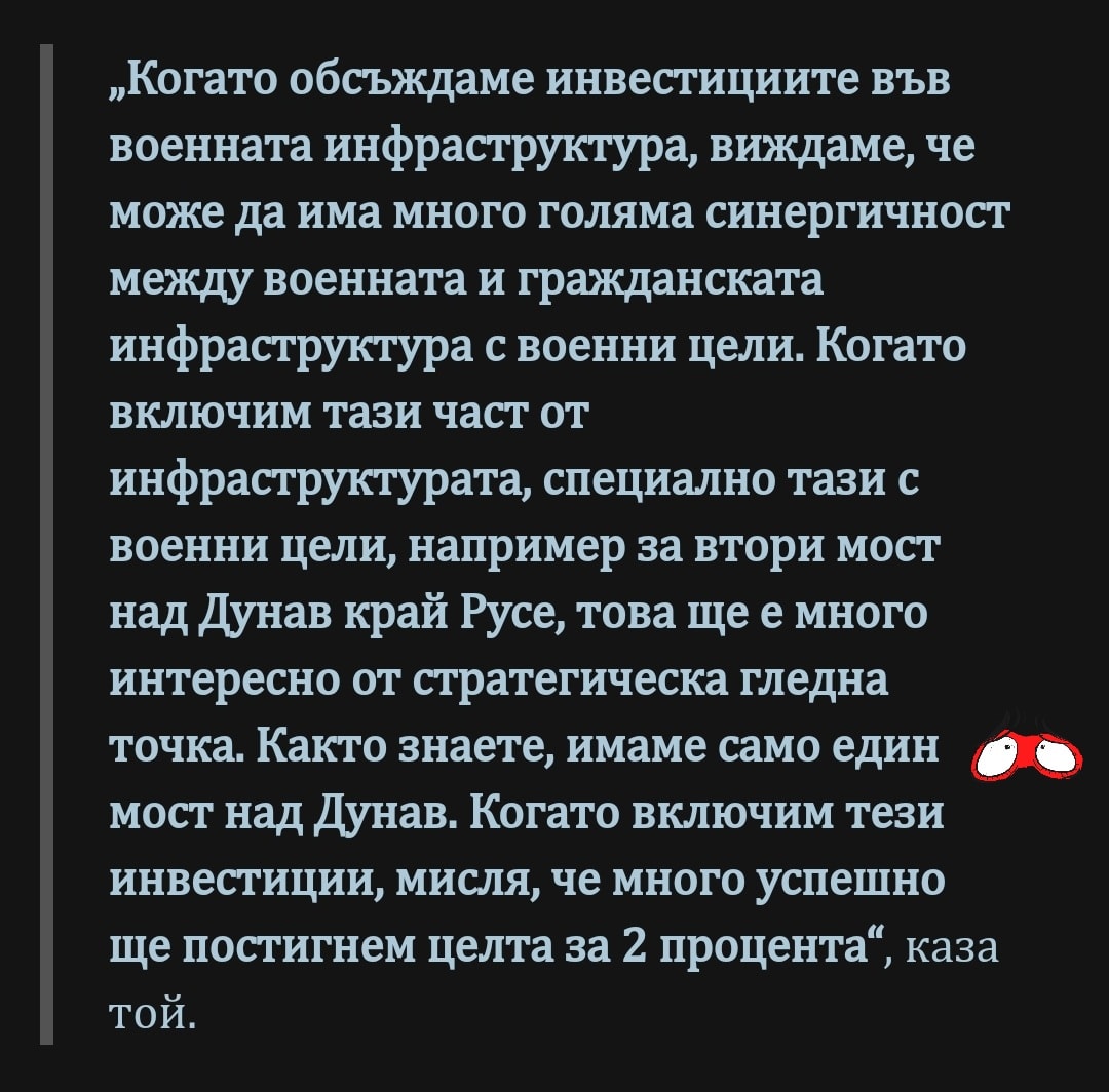 Подкрепяме идеята да се строи втори мост при Русе, тоест трети над Дунав, но не знаехме, че това е инвестиция във военна инфраструктура или гражданска с военни цели❗